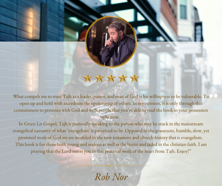 Thankful to all who took time to read and leave a forward for Tajh Martin’s Greenlit Gospel